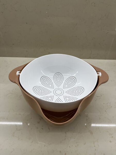 مناسب لغسل وتنشيف الخضار والفواكه، وتصفيه البقوليات والرز بسهولة، ومسكة اليد بتسهل الحمل والتحكم بدون فوضى!