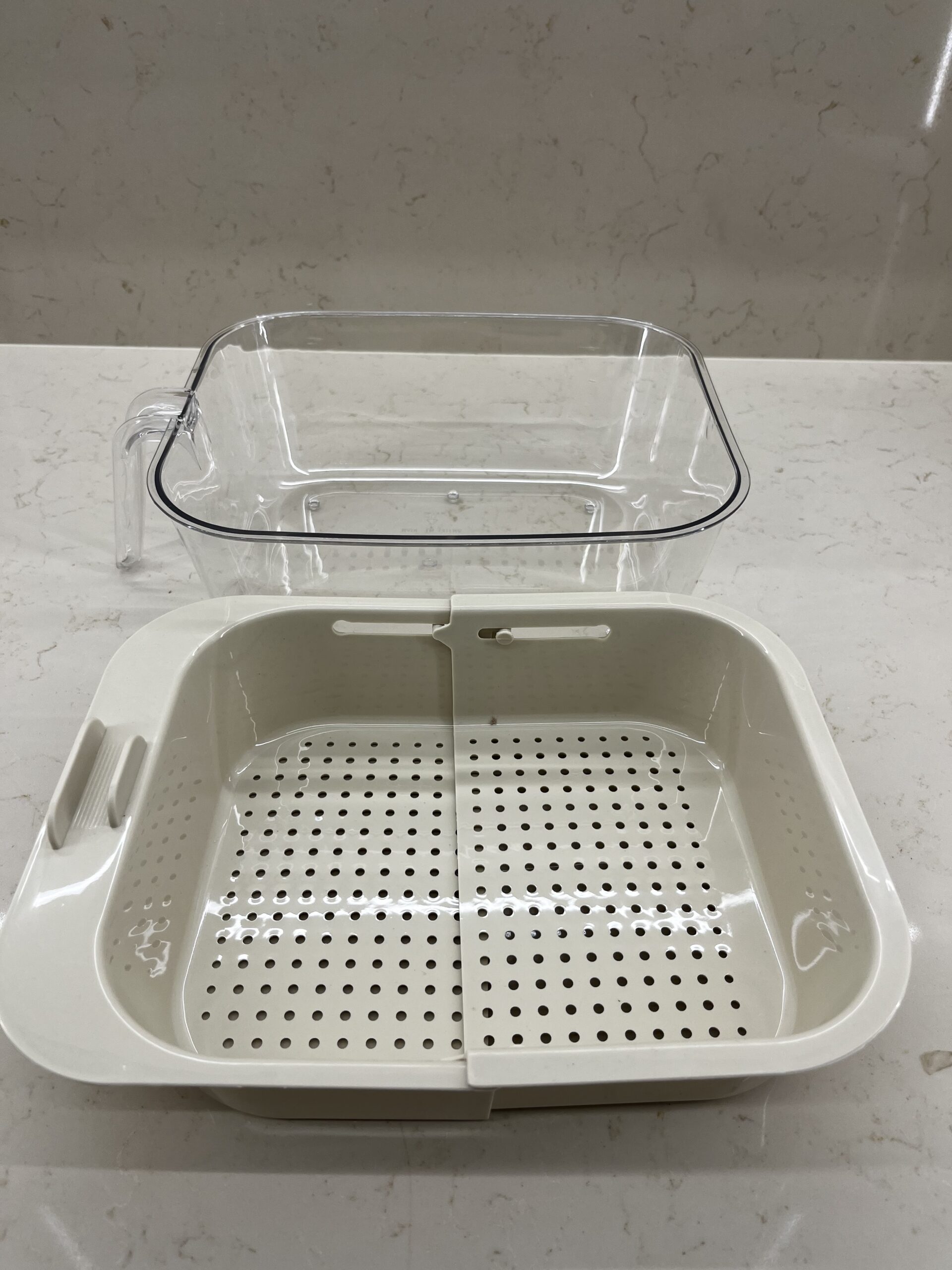 علبة أكريليك مع مسكة يد ومصفاة قابلة للتمدد